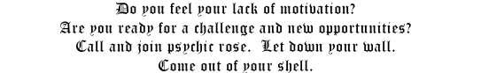 Write Psychic Rose include your Full name, Address, Telephone number, Email